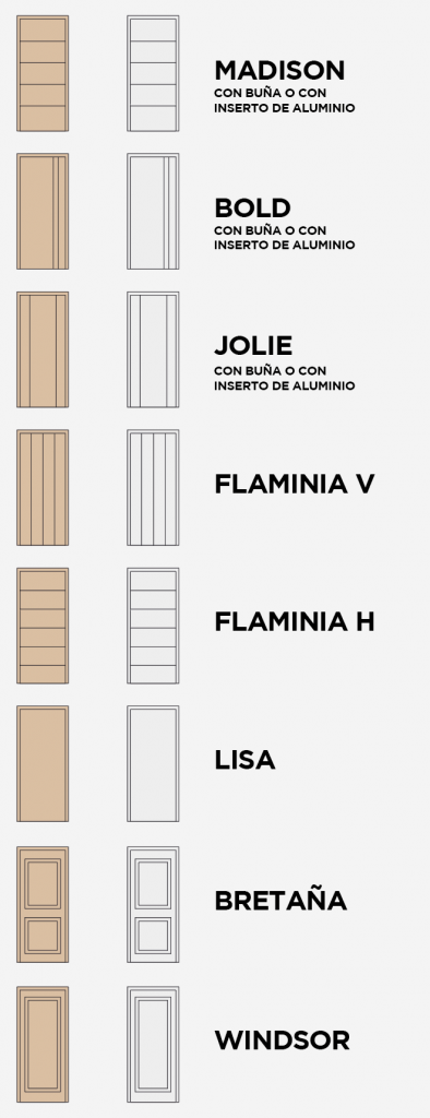 - TERMINACIÓN NATURAL, ENCHAPADAS, LISAS, PANTOGRAFIADAS O LAQUEADAS BLANCAS